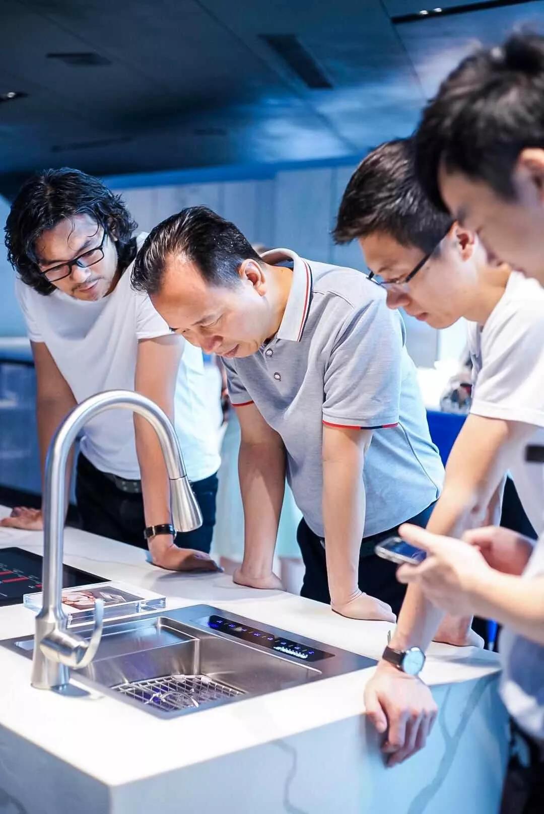 ▲索菲亚董事长江先生在感受智能水槽