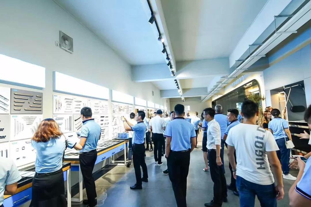 会议结束后,汪总带领橱柜协会一众成员参观悍高展厅,在偌大的展厅中 手机app下载站,琳琅满目地摆满了悍高的产品,多样多种的功能五金吸引了橱柜协会成员们的兴趣。