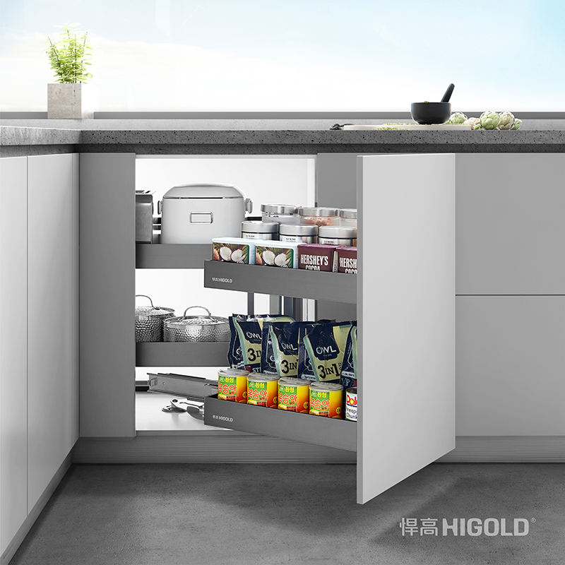功能:可应用于七字型橱柜中,充分利用转角位置空间 鉴黄师app,通过分体联动设计,把最里面的物件轻松取出,可存放锅盆等大型锅具,也适合各式厨房小家电,如面包机,榨汁机等。
