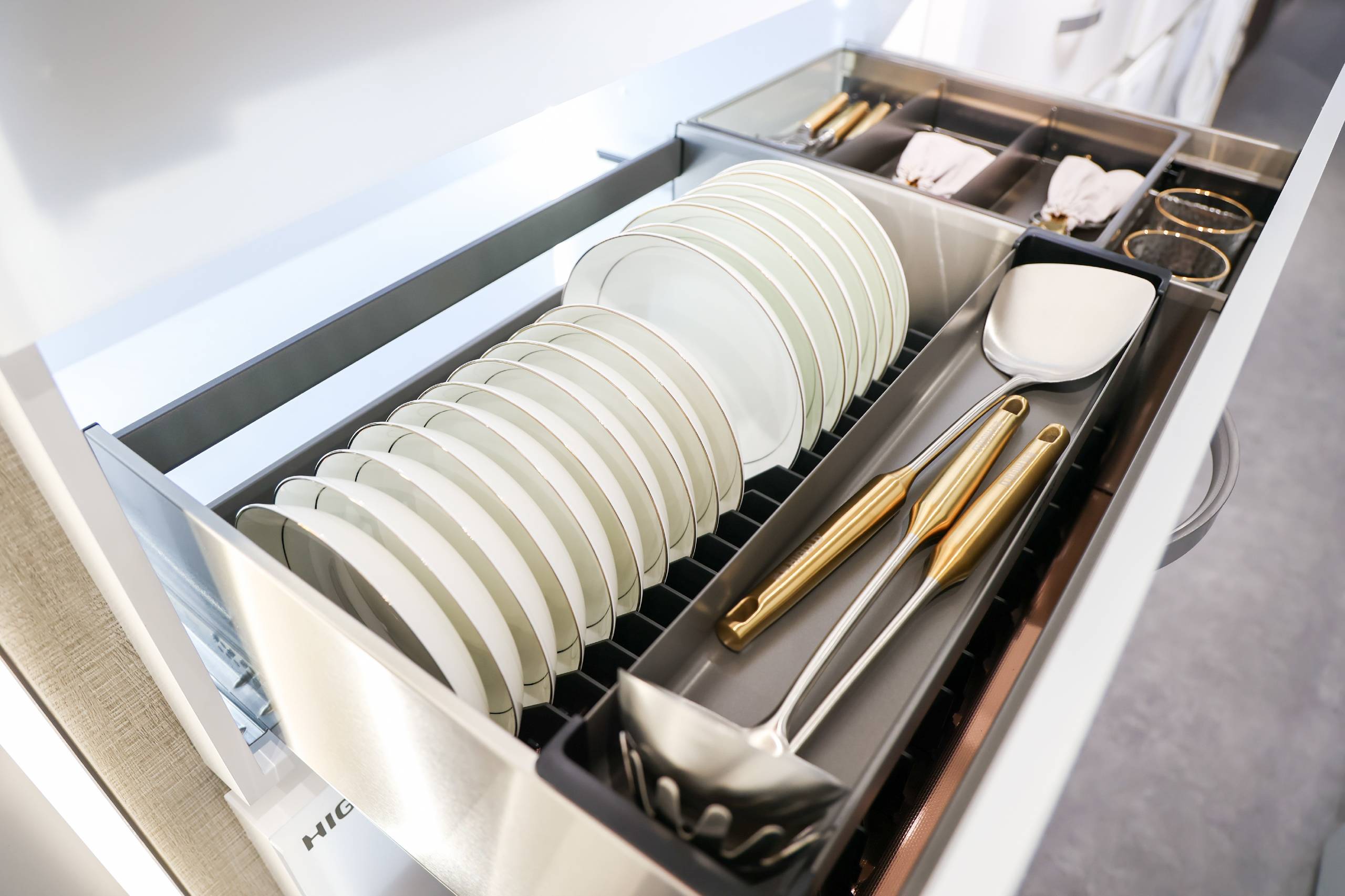 悍高收纳五金与基础五金新品秉持极简风、高级风,以雕刻现代精神与都市灵魂的高雅简奢惊艳与会观众。无缝焊接,底板二合一的全新升级希勒家族系列;行业首创、全新支杆设计的360°高柜旋转篮陀飞轮;荣获国家发明专利,独特单杆设计的飞碟3.0;致敬力学、随意悬停的星云升降机;冠冕国际双料设计大奖的希勒4.0系列拉篮;抽中带抽、灵动收纳的基多拉系列拉篮;匠心细节、摩登配色的BV·莫兰绿系列;加厚电镀、钢劲品质的M2.0静音阻尼铰链。